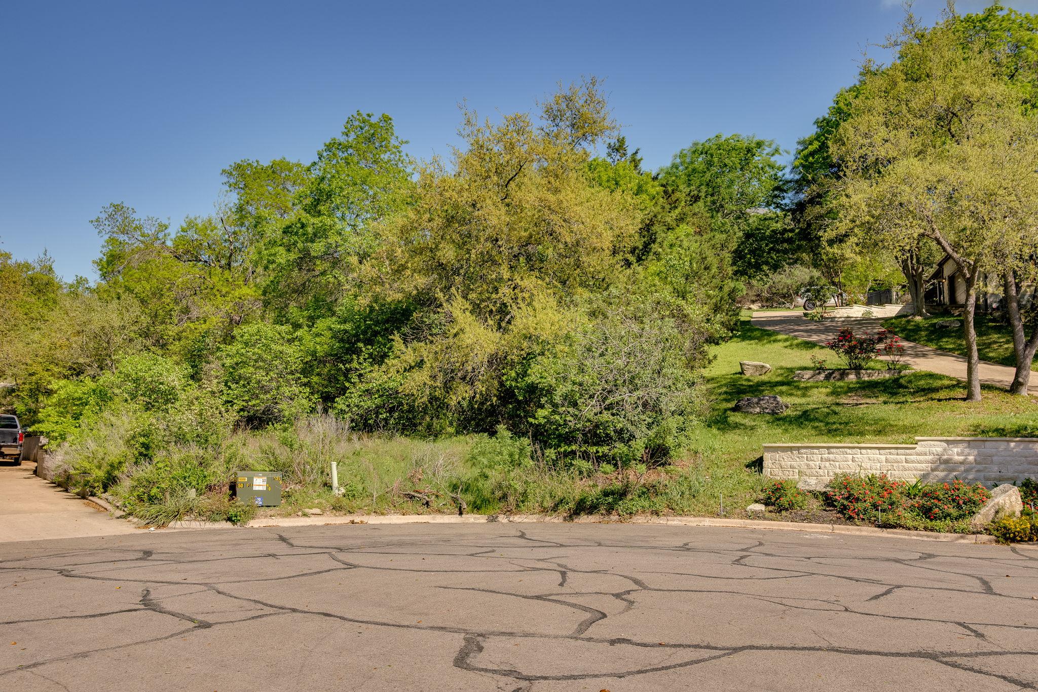 BUILDING PLANS CONVEY! Shepard Mountain retreat Nestled in a quiet cul-de-sac! This spacious three quarter acre wooded hillside lot with hill country views at its peak. The top of the hillside is waiting for you to build your dream home and enjoy the hill country views looking towards the ridge between Shepherd Mountain, Westcliff, and Long Canyon.
