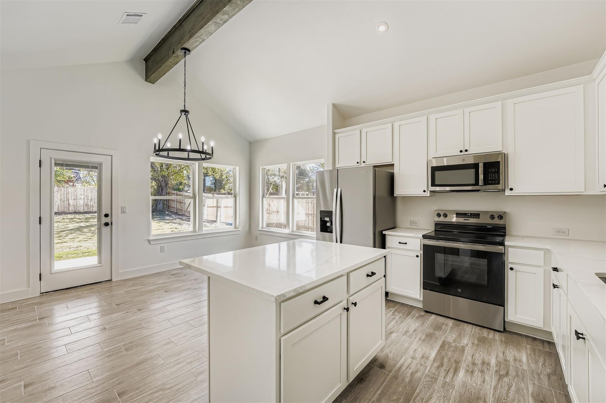 Built in 2024, this new construction 3-bedroom, 2-bath home offers 1,861 square feet of open-concept living in the heart of Elgin, TX with no HOA restrictions. Designed with modern finishes and thoughtful details, the home features soaring ceilings with rustic wood beam accents, wood-style vinyl plank flooring, and abundant natural light throughout. The spacious kitchen includes quartz countertops, stainless steel appliances, ...