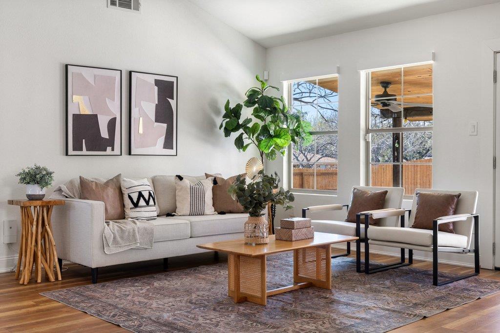 Impeccably presented, this renovated 3 bed, 2 bath corner lot home in 78745 offers the perfect balance of comfort, style, and location. The open living area is filled with natural light from oversized windows and features luxury waterproof vinyl plank flooring, vaulted ceilings, and a recently inspected stone gas log fireplace. Double doors create seamless indoor-outdoor flow to the backyard oasis. The kitchen boasts dual to...