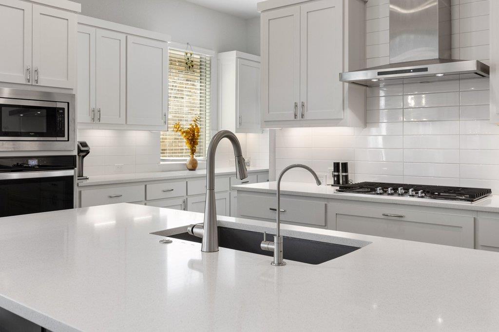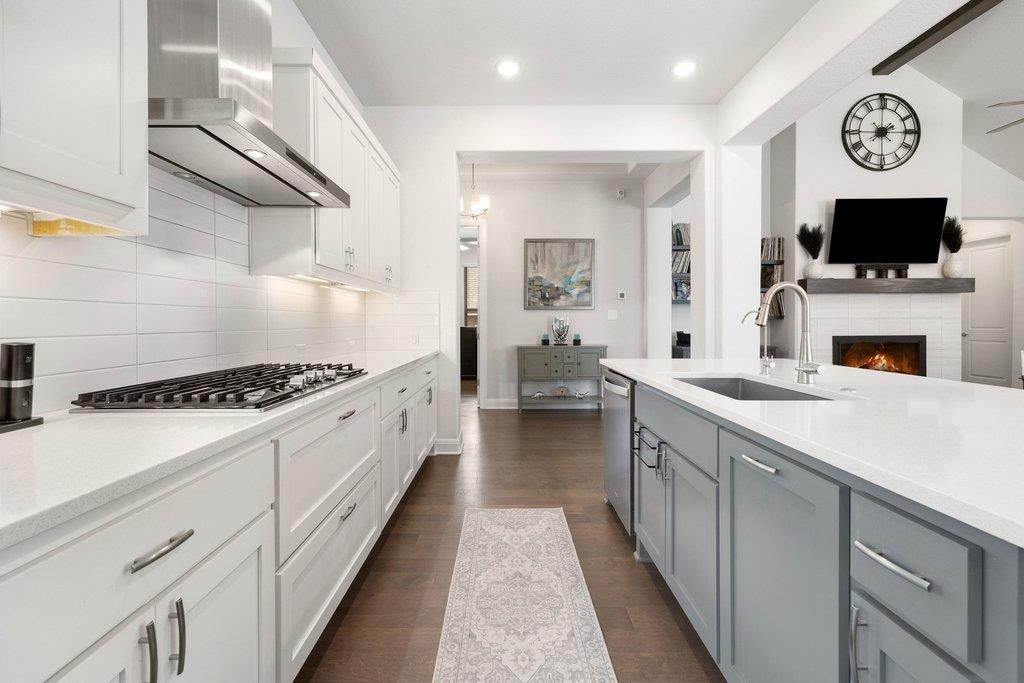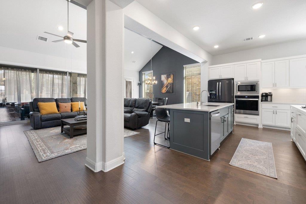 Welcome to this stunning single-story Drees home located in Georgetown's desirable Wolf Ranch community. This thoughtfully crafted floor plan features spacious living areas, an abundance of natural light, and designer finishes throughout. The heart of the home is a large kitchen equipped with a gas cooktop and extensive cabinet and counter space. The adjacent living room provides a sophisticated retreat, complete with a gorgeo...