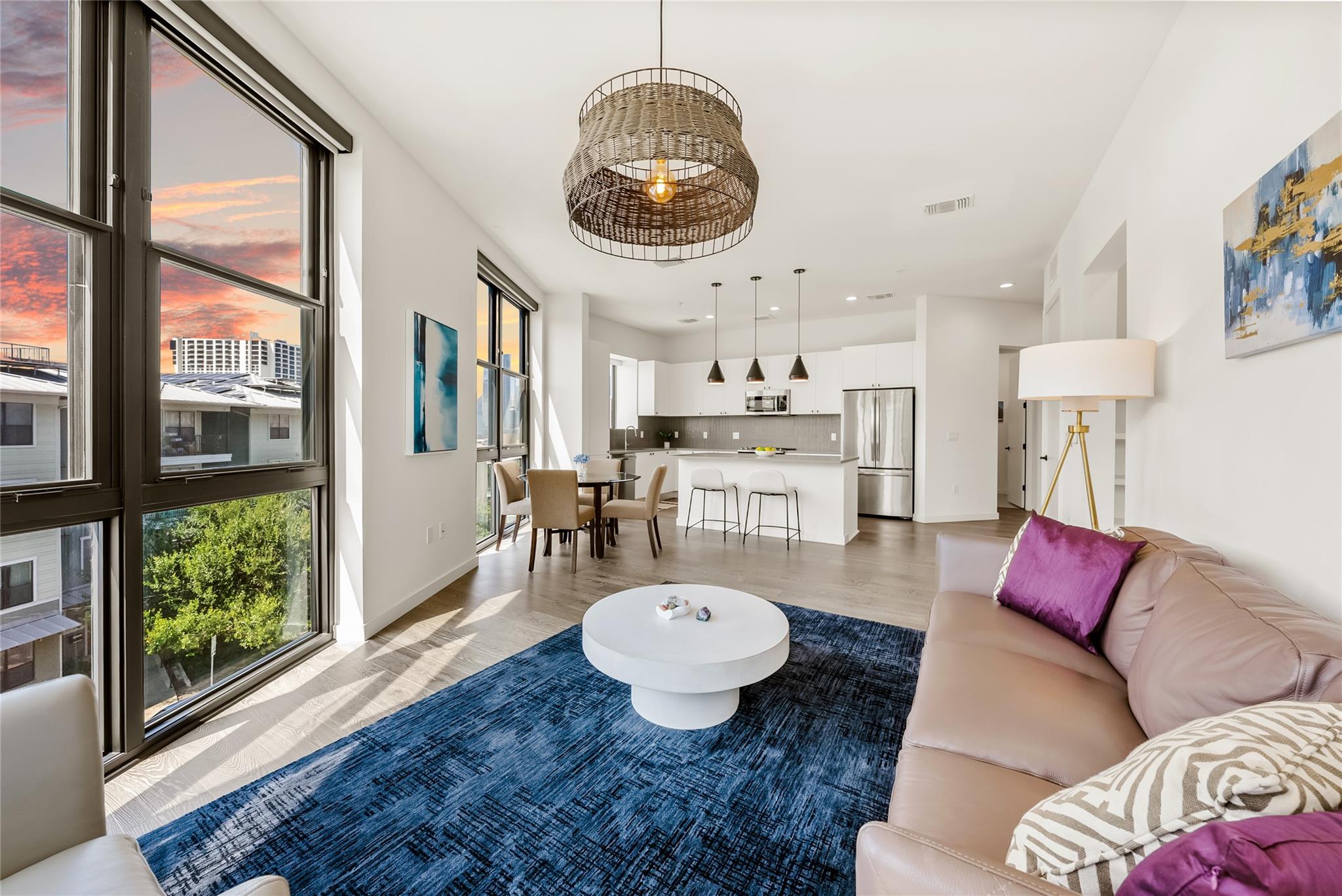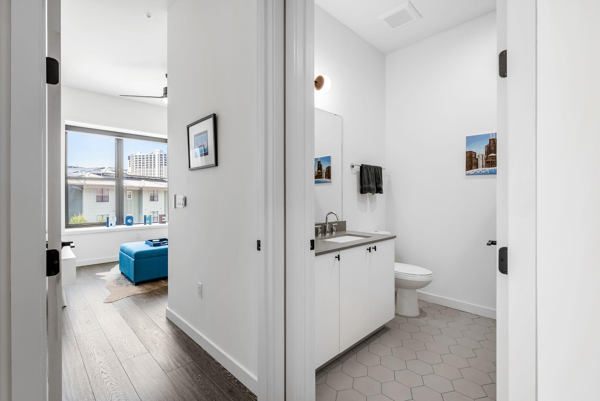 Step into over 1,300 square feet of elevated downtown living at The Tyndall. This 2-bedroom, 2-bath residence with a versatile flex room boasts 10-foot ceilings, floor-to-ceiling windows, and electric shades framing south, east, and west-facing views of the Austin skyline. Inside, thoughtful design meets everyday convenience with an open layout, abundant natural light, and premium finishes. Two reserved garage spaces are incl...