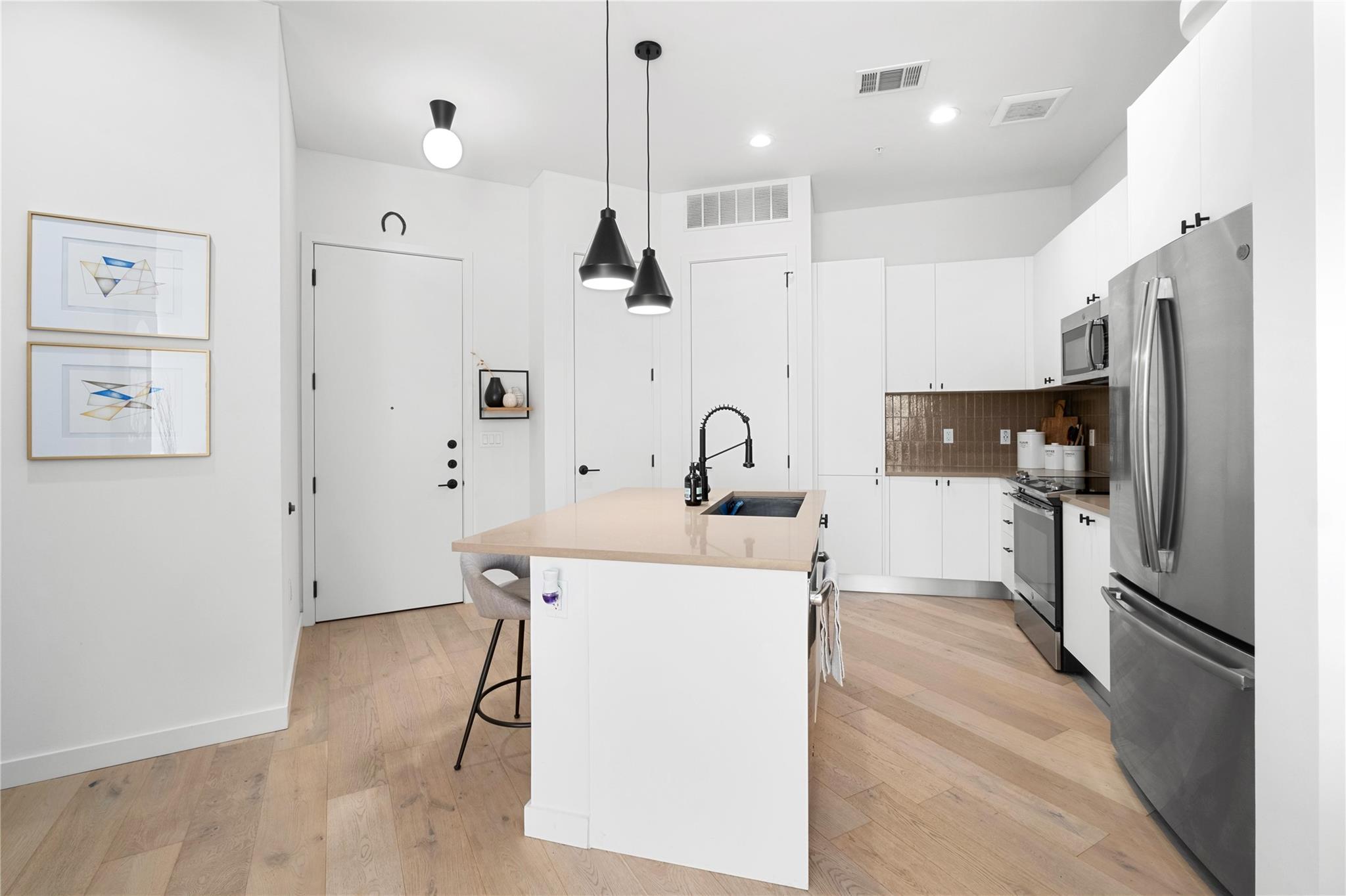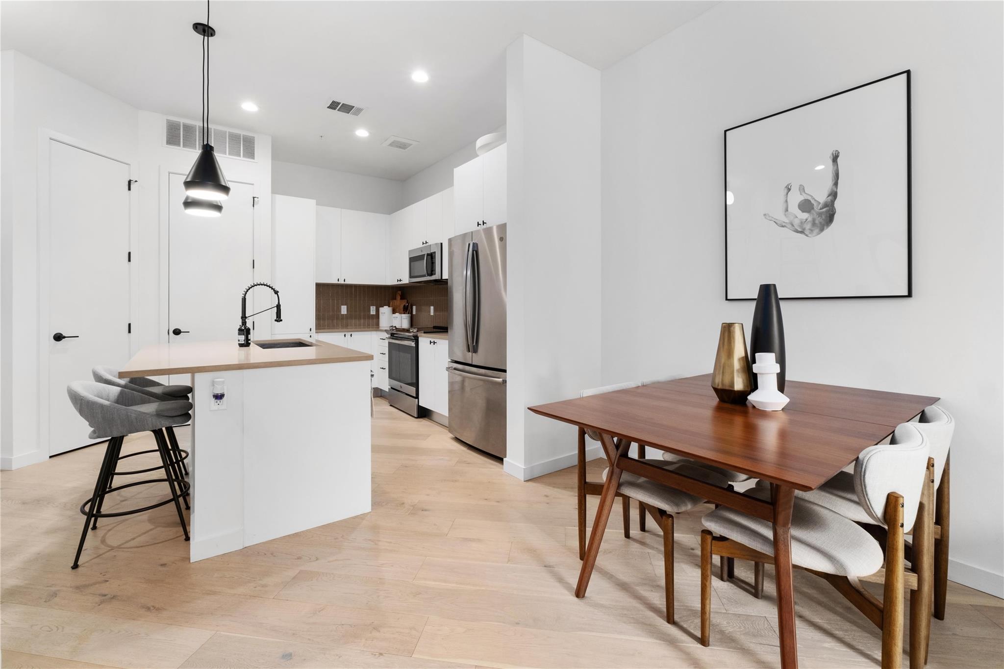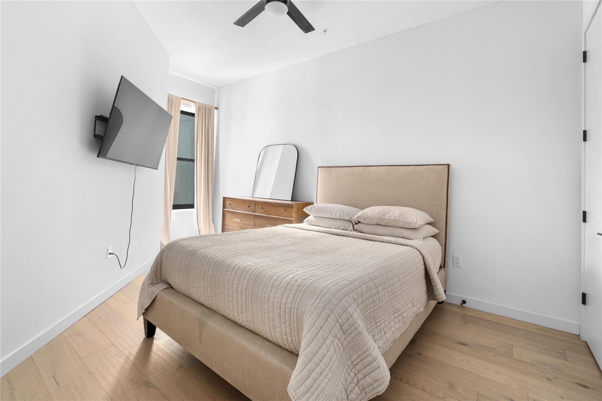 Experience downtown living at its finest in this stunning 1BR, 1BA condo at The Tyndall! Offering 755 sq. ft. of well designed space, this unit boasts beautiful finish-outs including Silestone countertops, stainless steel appliances, a custom tile backsplash, sleek modern cabinetry, and natural oak engineered wood floors. The expansive floor-to-ceiling windows flood the space with natural light, creating a bright and airy atmo...