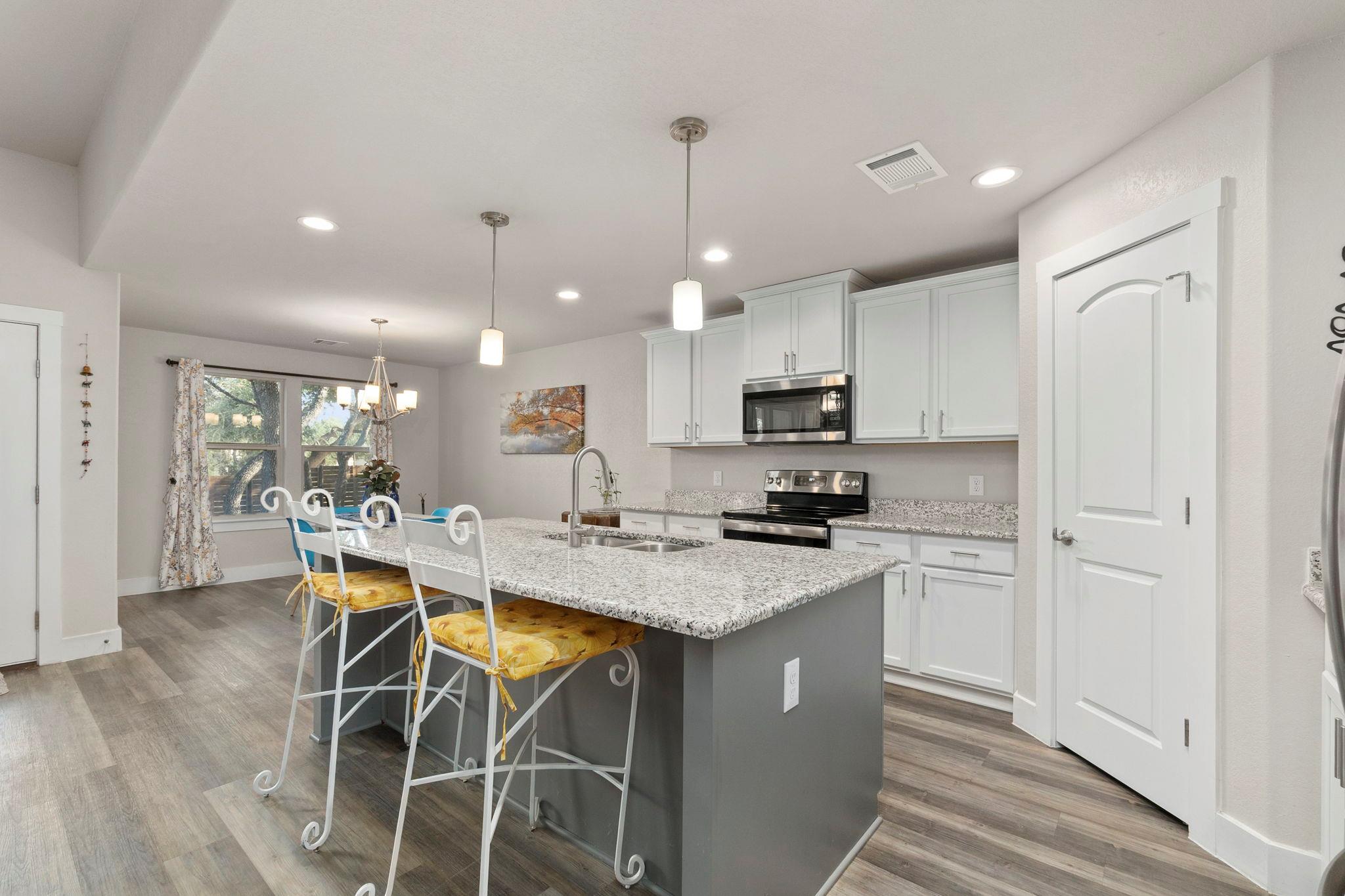 Nestled in the sought-after Rockin J Ranch golf community, this inviting home offers the perfect blend of comfort and convenience. Set on a spacious lot, the property captures the natural beauty of the Hill Country while providing modern amenities that make everyday living easy. The open-concept floor plan is bright and functional, creating a welcoming space for both relaxation and entertaining. A well-appointed kitchen anchor...