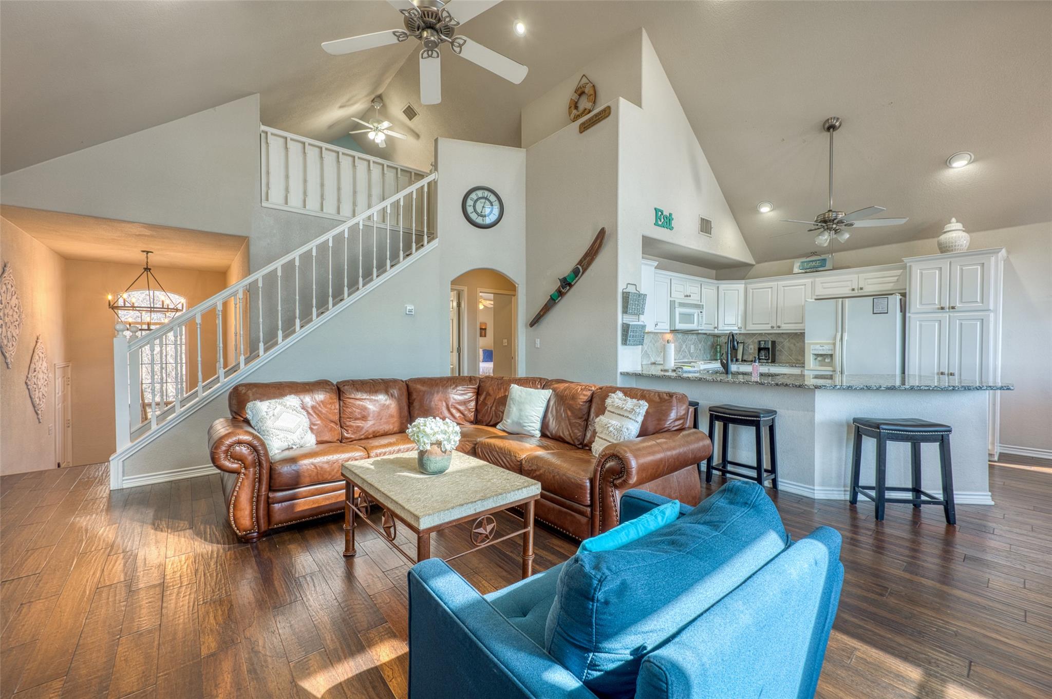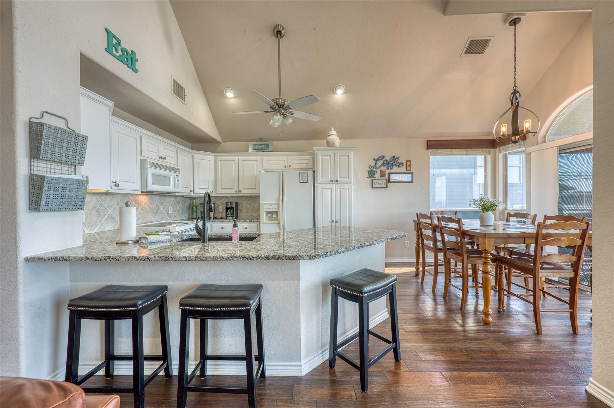 - Breakfast Bar, Ceiling-Vaulted, Recessed Lighting, Track Lighting, Walk-In Closet(s)