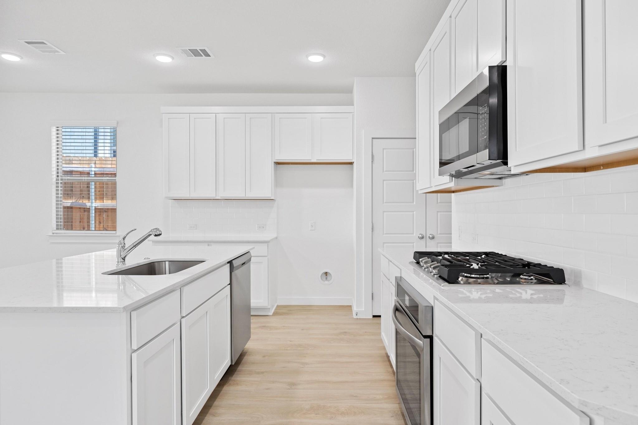- Cooktop, Disposal, Microwave, Stainless Steel Appliance(s), Vented Exhaust Fan, Tankless Water Heater