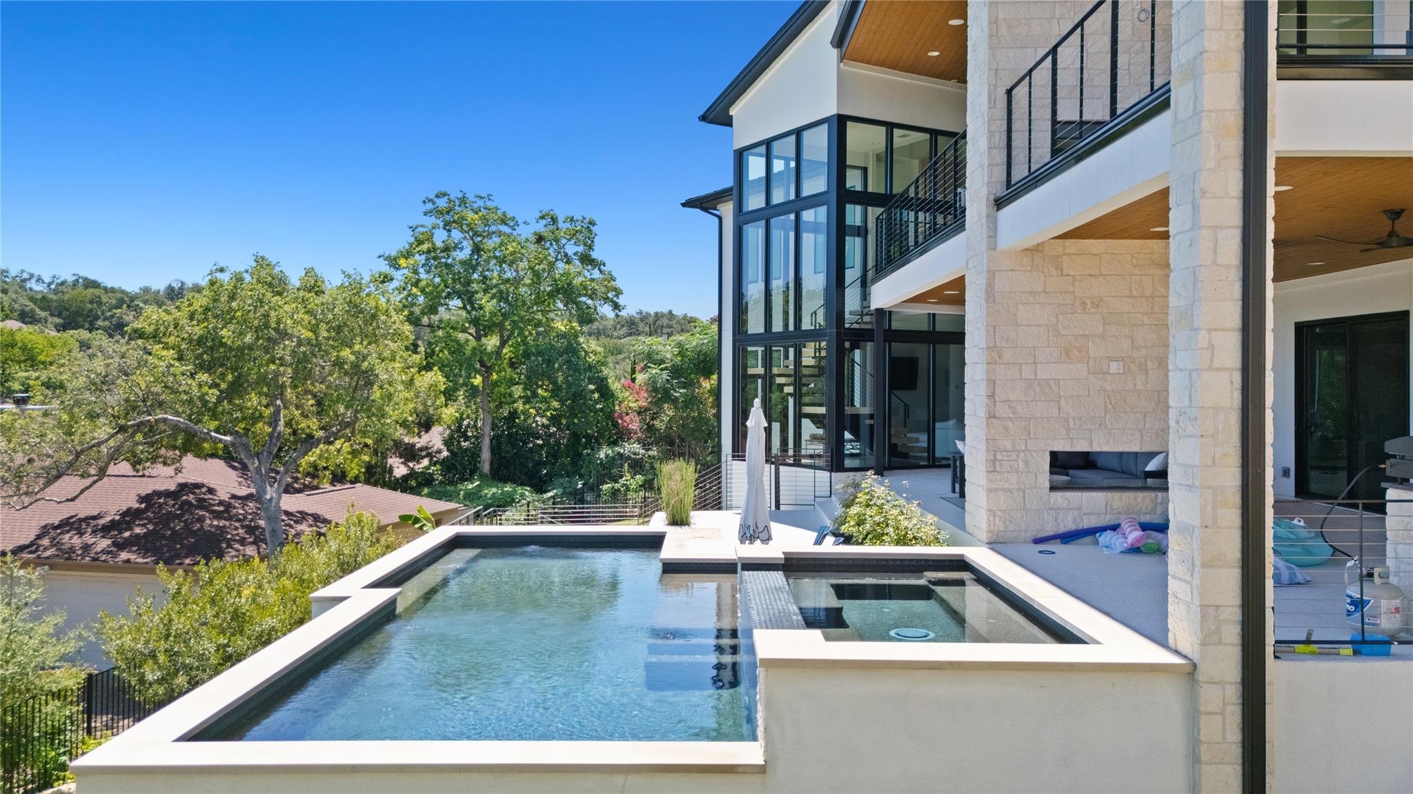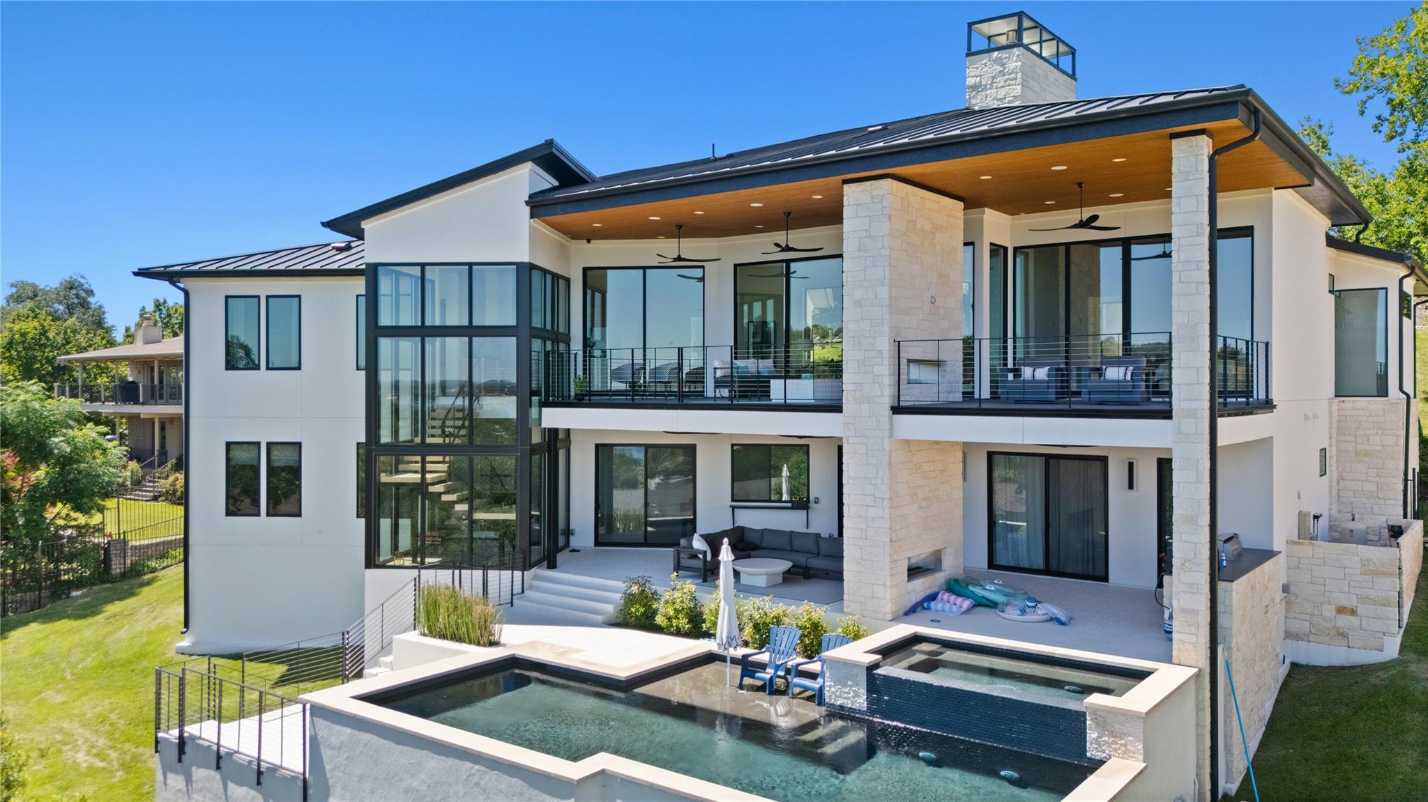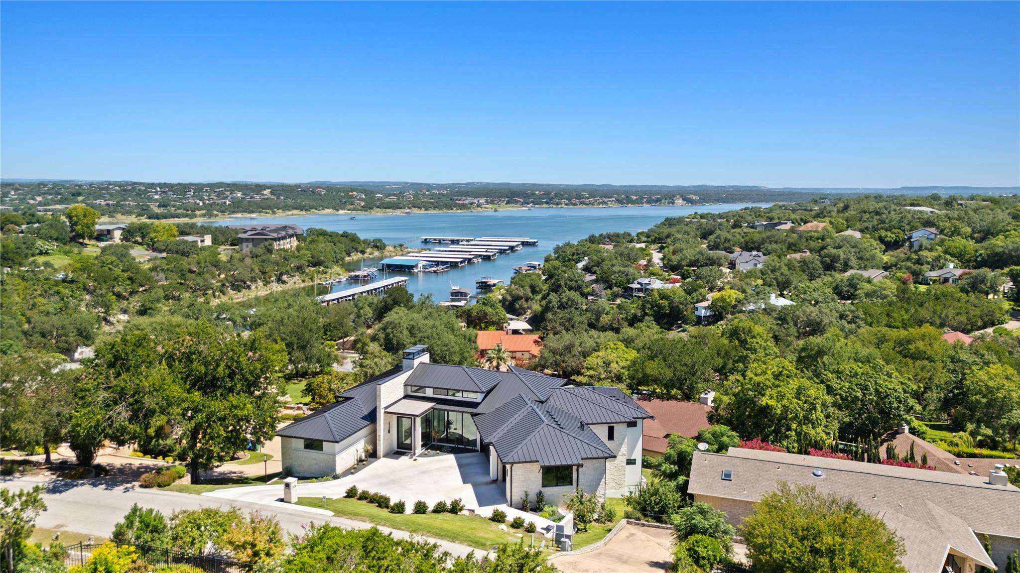 This breathtaking modern residence in the heart of Lakeway boasts captivating views of Lake Travis. Crafted by Strobel & Associates in a new construction endeavor, every aspect of this home has been meticulously considered. Luxurious touches abound, from the striking iron staircase encased in glass to the distinctive and modern light fixtures. Thoughtful splashes of color accentuate the space perfectly, complemented by multipl...