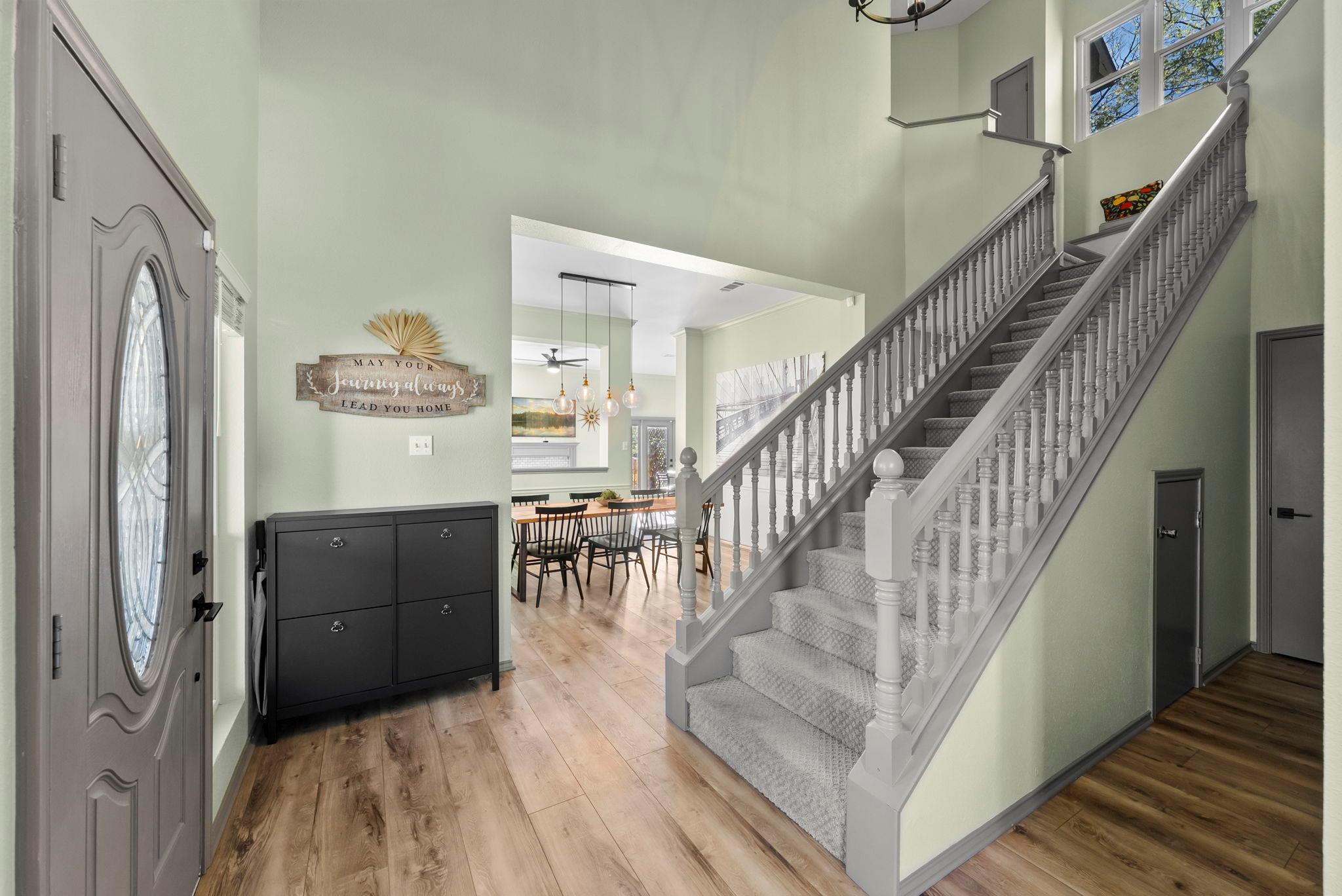 Updated, energy-efficient home just steps from Hunters Chase Park with flexible living spaces and a large backyard. The light-filled interior features luxury vinyl flooring downstairs, tall ceilings, updated lighting, and no popcorn ceilings. The remodeled kitchen offers a gas cooktop, double ovens, prep sink, farmhouse sink, and breakfast area overlooking the yard. Refrigerator conveys. Functional floor plan with multiple liv...
