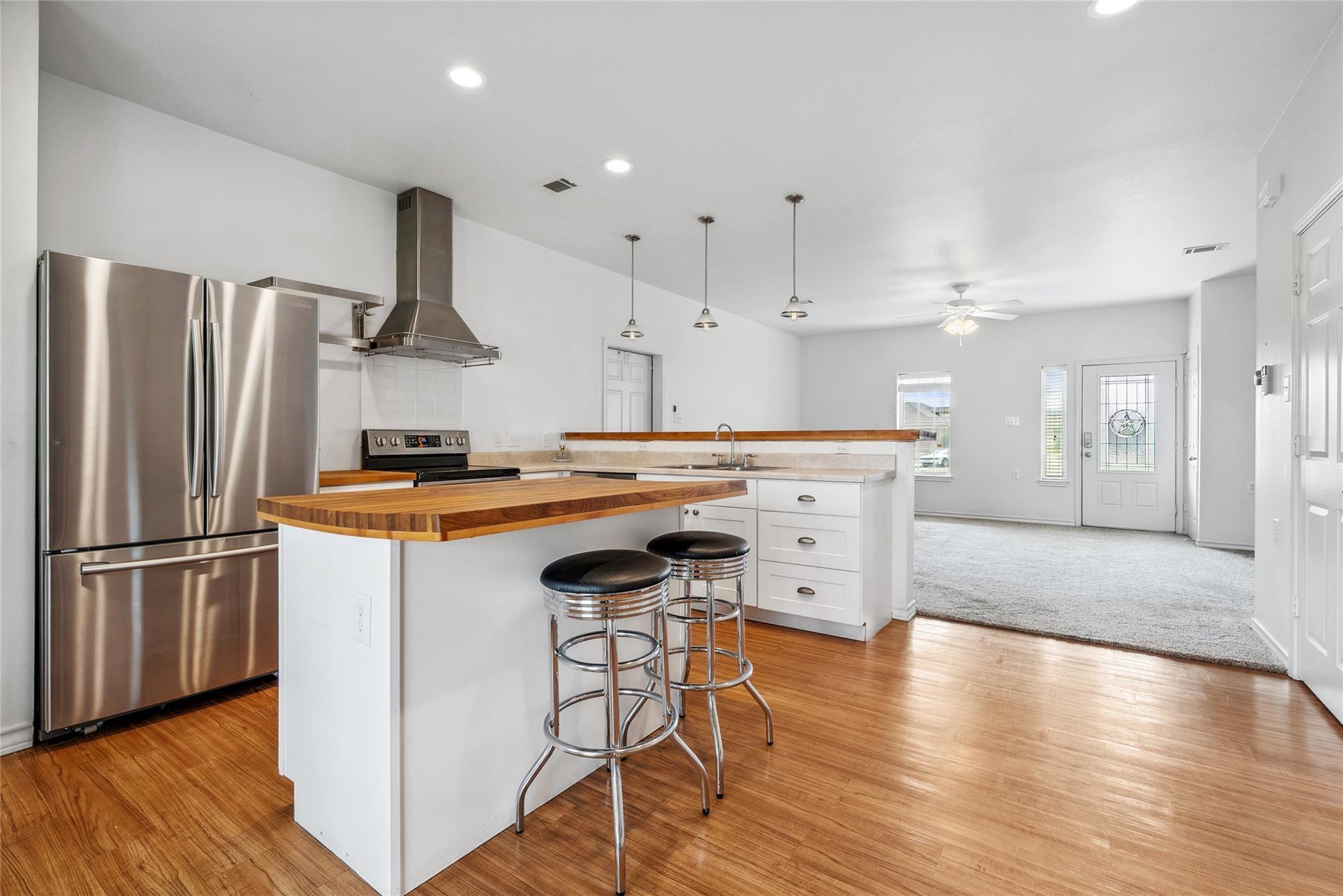 Situated on a peaceful cul-de-sac with no HOA. This beautifully designed 2-bedroom, 2-bathroom home offers 1,394 square feet of comfortable living space with thoughtful details throughout. Each bedroom its own outside access. Secondary bedroom has it own door to the hall bathroom. Built in 2014, it features an open-concept kitchen with a beautiful butcher block center island that flows seamlessly into the family room, creating...