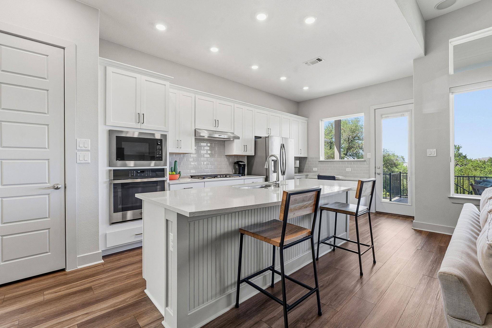 This beautiful home has been thoughtfully designed, blending an elevated style with everyday comfort in the scenic Provence community. Built by David Weekly Homes, this EnergySaver home stands out for its quality construction and efficiency, paired with picturesque Hill Country views, rolling hills, and beautiful sunsets. Backing to a greenbelt with mature trees, the home enjoys a peaceful, private setting with a lush backyard...