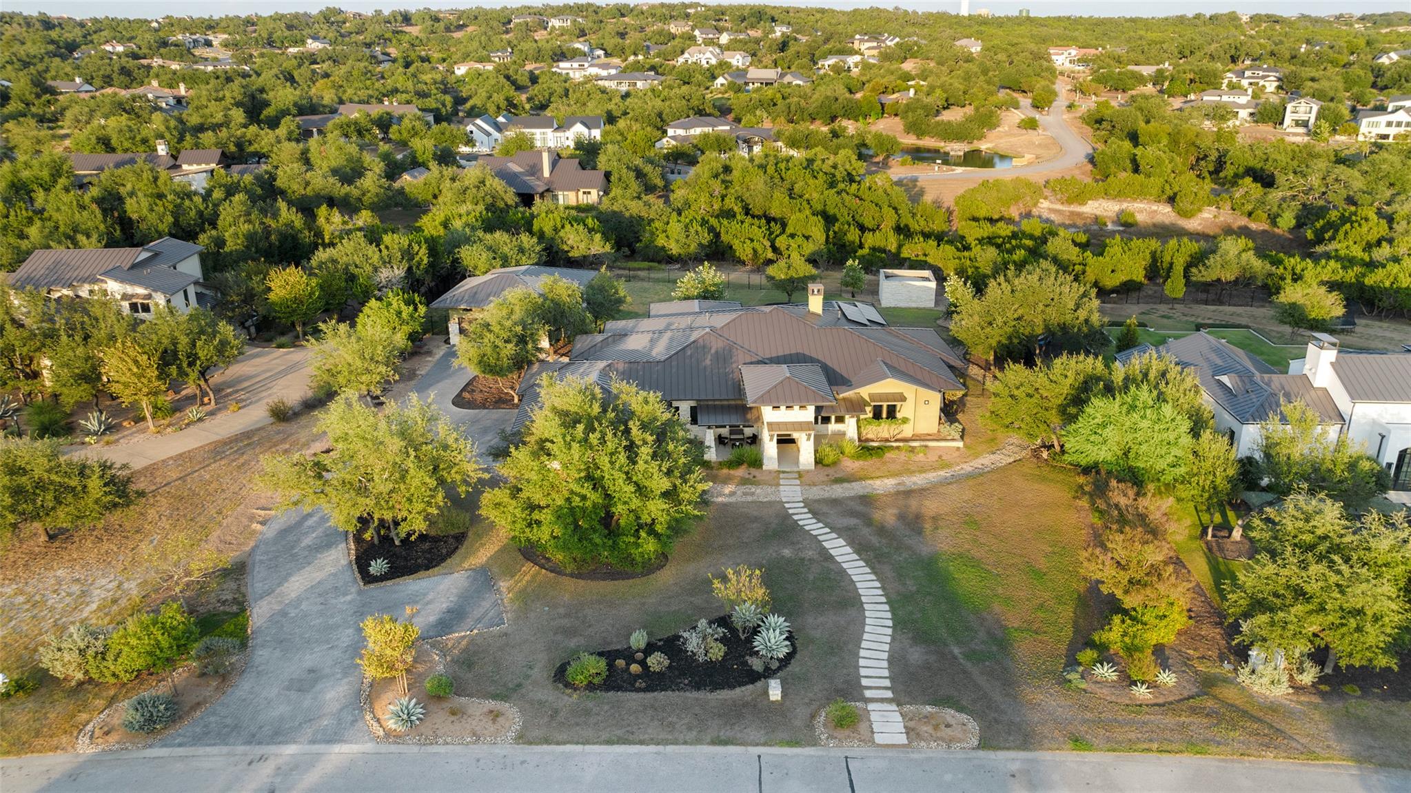 Welcome to a haven of Hill Country living in a gated community on 1.3 acres, where contemporary design and nature unite in perfect harmony. This exceptional estate includes a single-story 3,816 sq ft custom residence w/ oversized 3 car garage, plus a newly completed ~1,600 sq ft climate-controlled garage + office addition—offering 5+ total garage bays with option for lifts, ideal for a car enthusiast or creative professional. ...