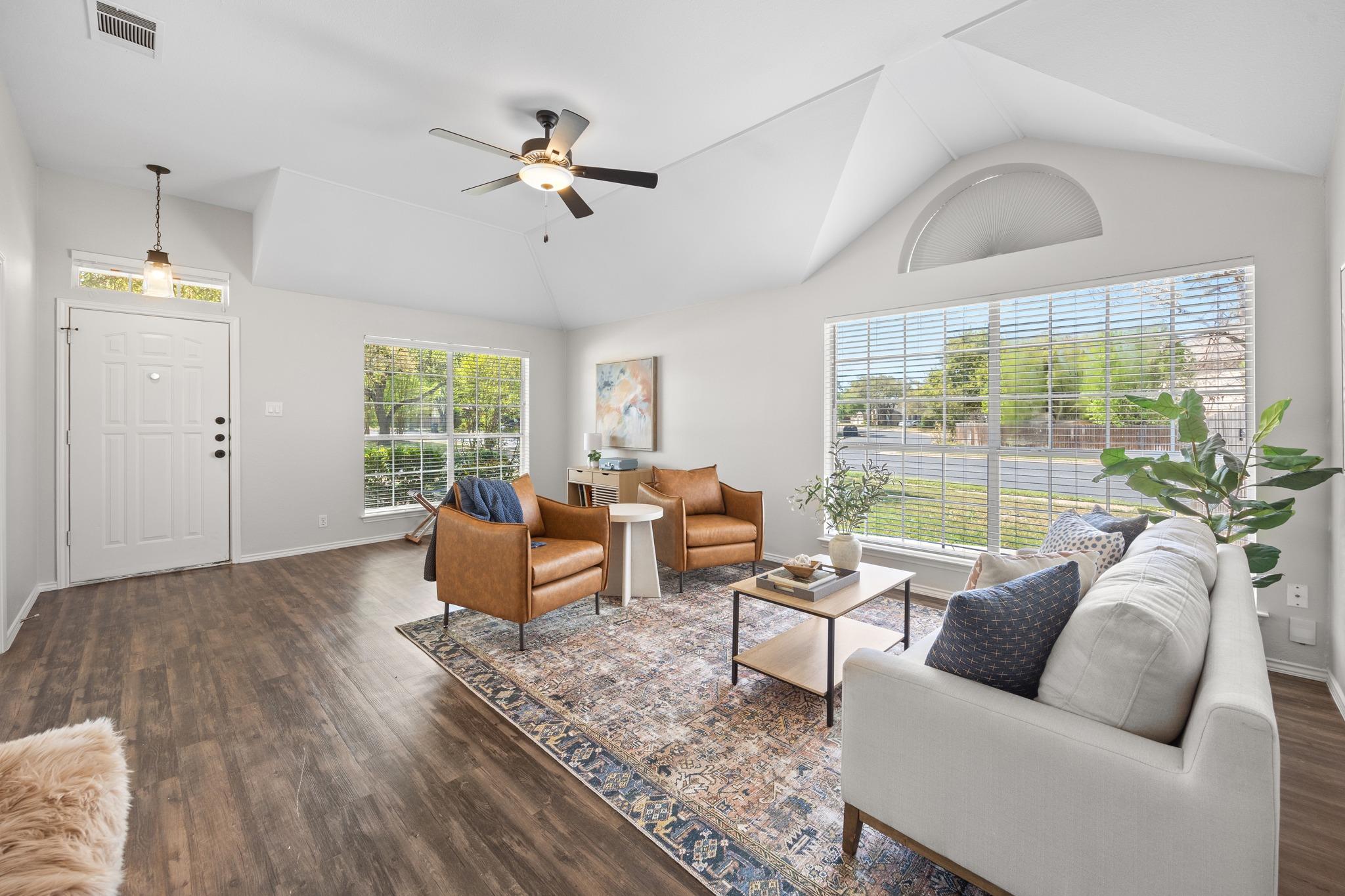 Beautifully updated and move-in ready, this spacious home in the highly desirable Meadows of Brushy Creek offers a flexible layout with 3 bedrooms, 2 bathrooms, plus a dedicated study that can easily serve as a 4th bedroom. High ceilings, abundant natural light, and no carpet throughout create a bright, modern feel from the moment you walk in. The thoughtfully designed floorplan features double living areas, including an open ...
