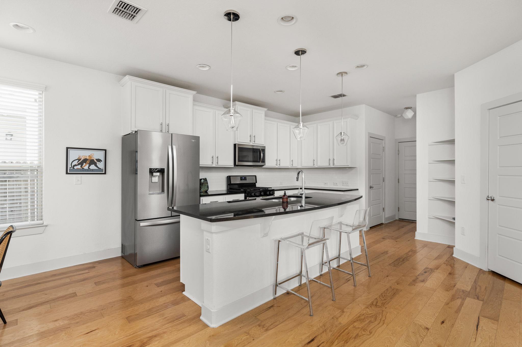 THE BEST DEAL IN SEARIGHT VILLAGE! Immerse yourself in the vibrant energy of South Austin with this luxurious 3-bedroom, 2.5-bathroom condo that redefines contemporary living, featuring plenty of guest parking. Just minutes from downtown, Southpark Meadows shopping and dining and all neighborhood schools, this 2018-built two-story home speaks to quality and comfort. Step into dramatic vaulted ceilings that frame sun-drenched i...