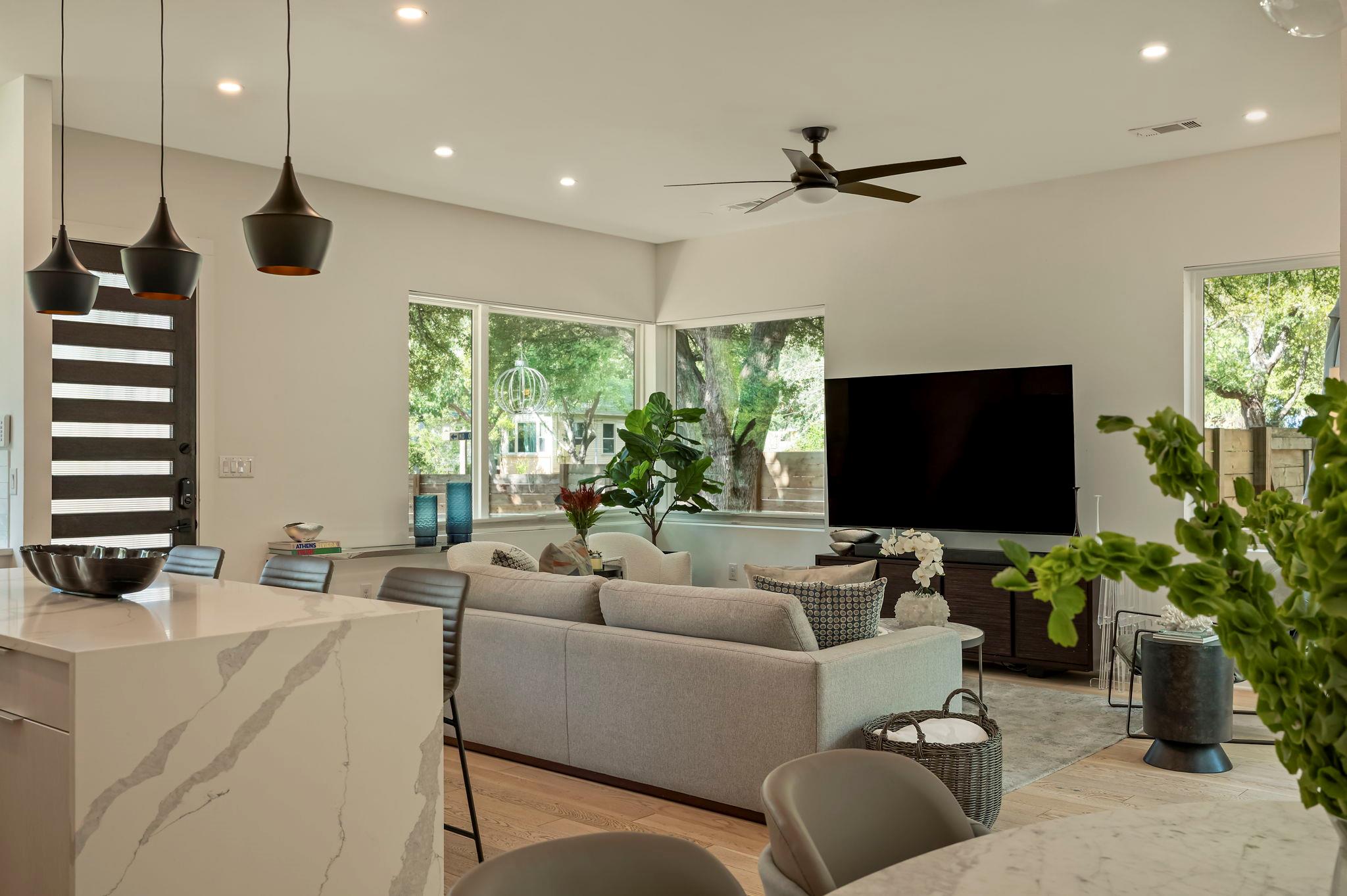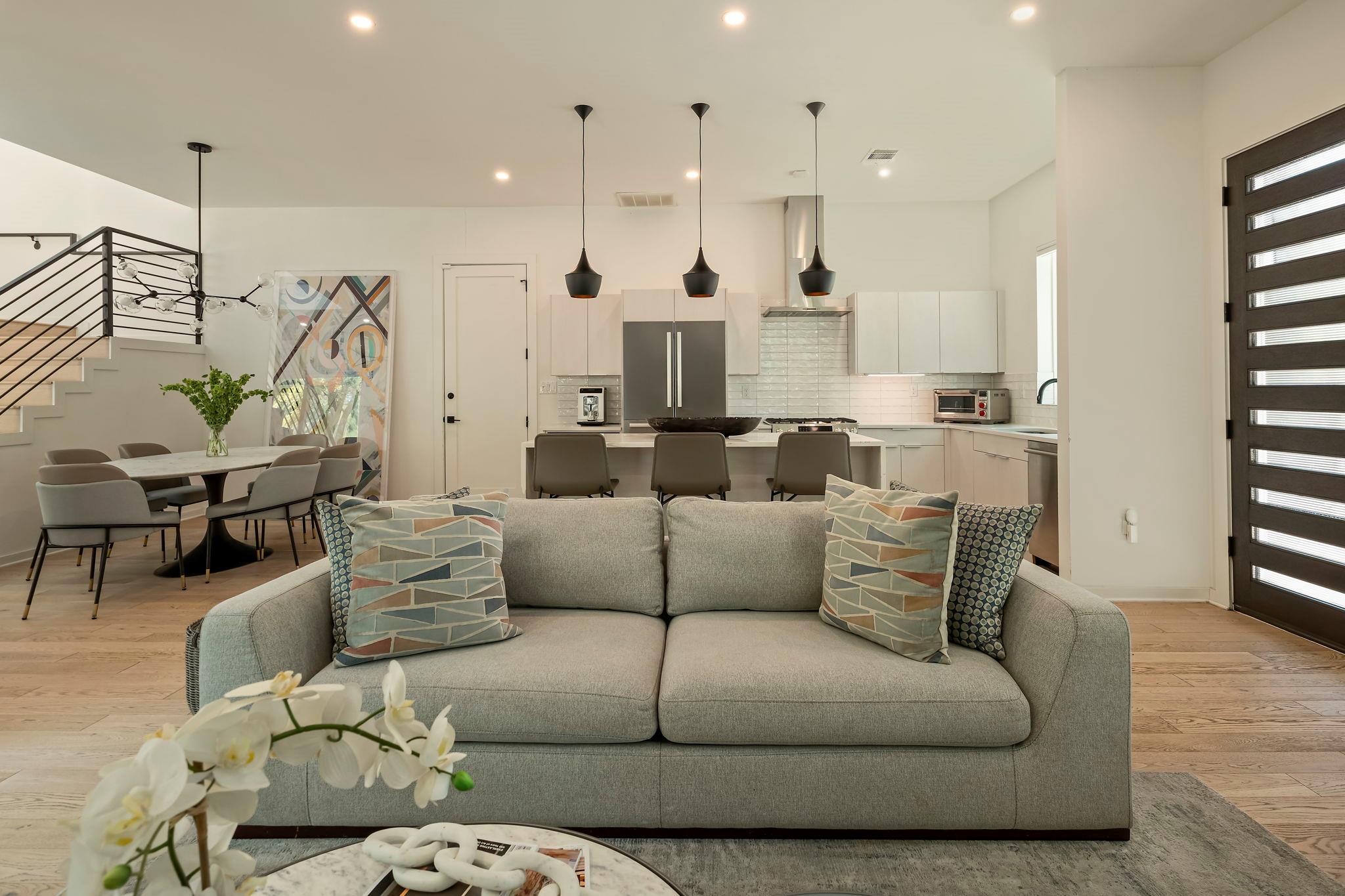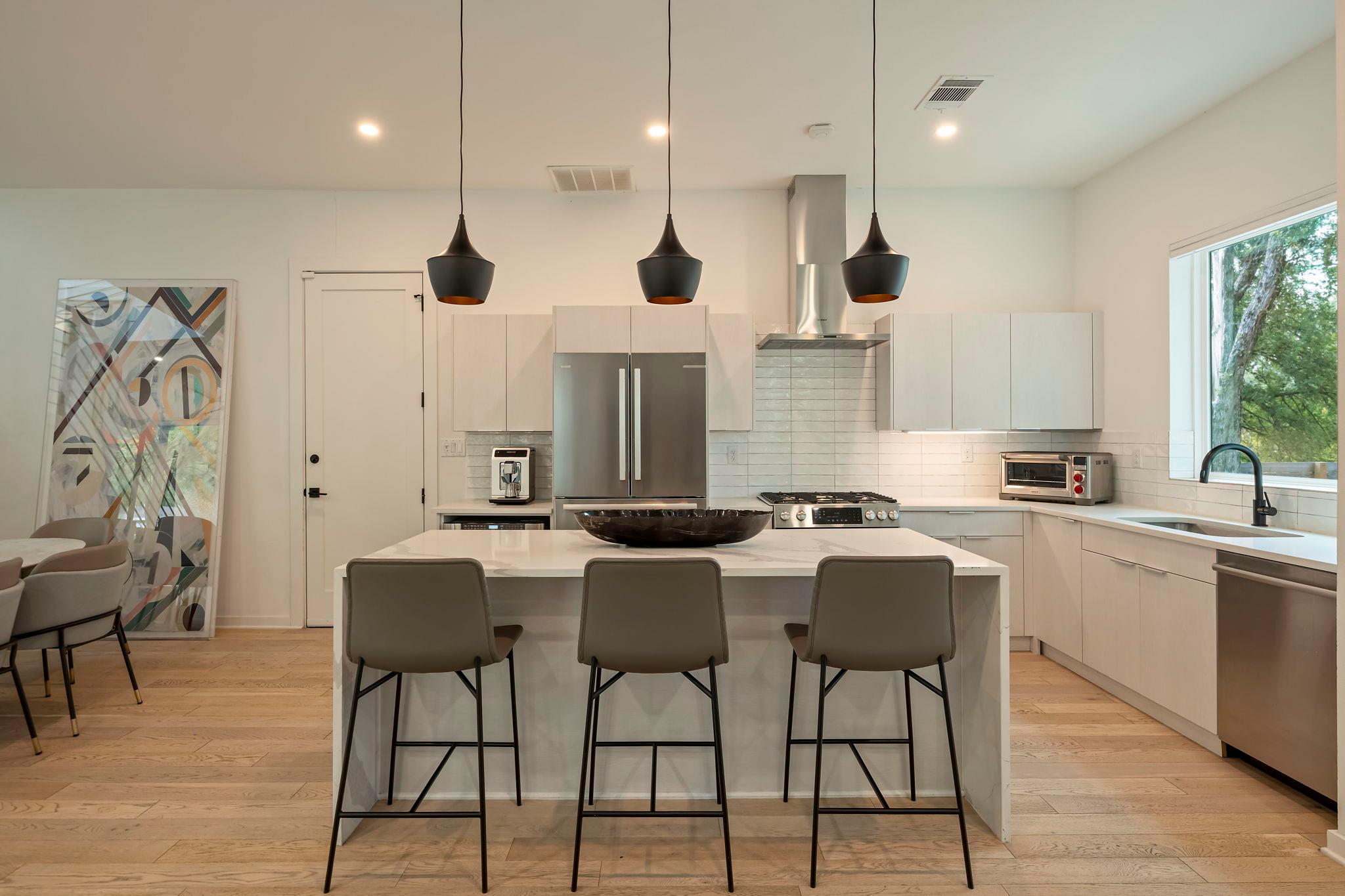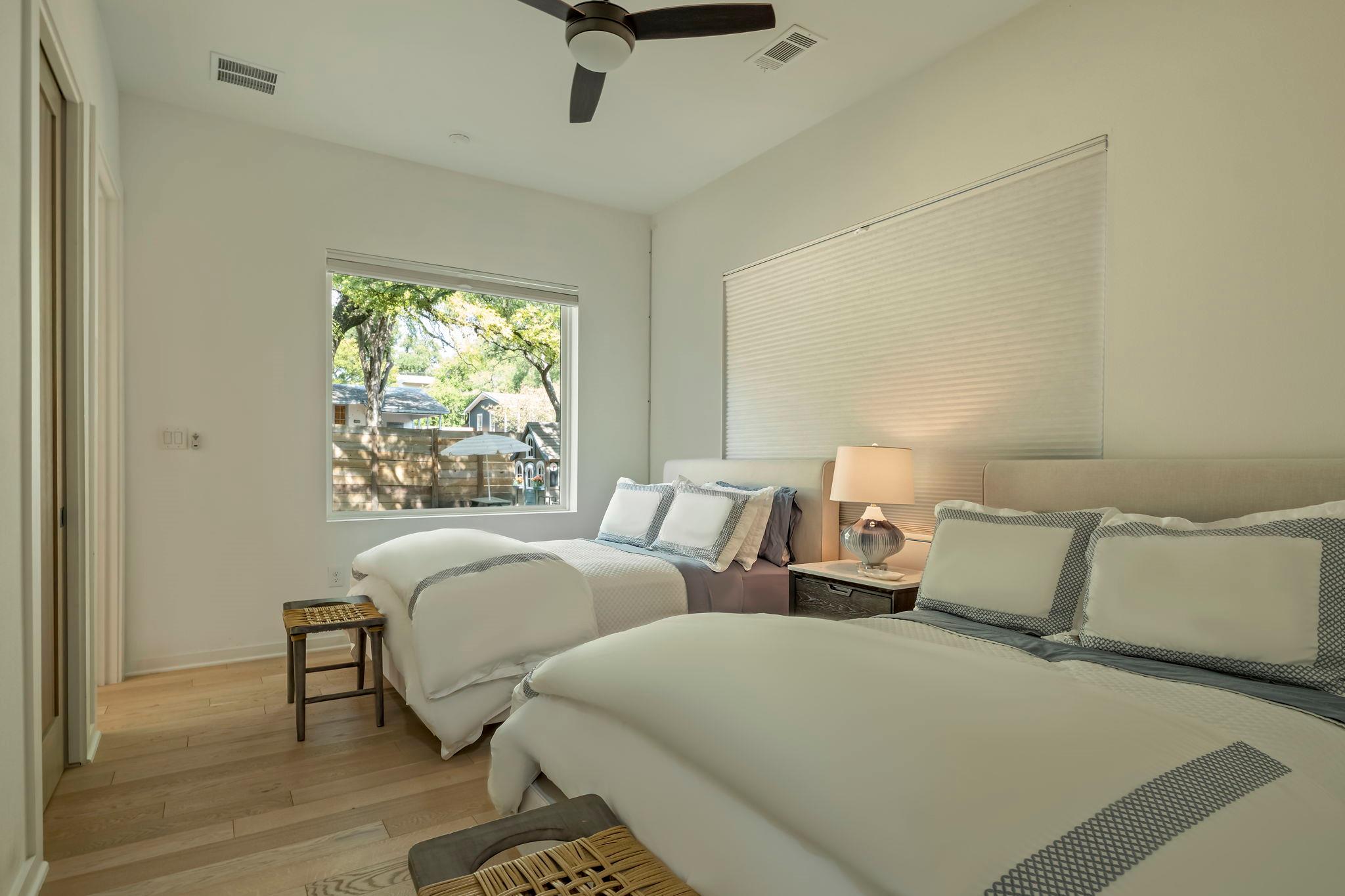 Located in the St. Elmo District / South Manchaca neighborhood along a quiet tree-lined street, this corner property lives like a single-family home. Completely fenced and gated, it offers privacy with both a front yard and a backyard shaded by mature Live Oak and Elm trees. This thoughtfully designed 3-bedroom, 3-bathroom home also includes a detached bonus studio for use as an additional room, gym, office, or creative space....