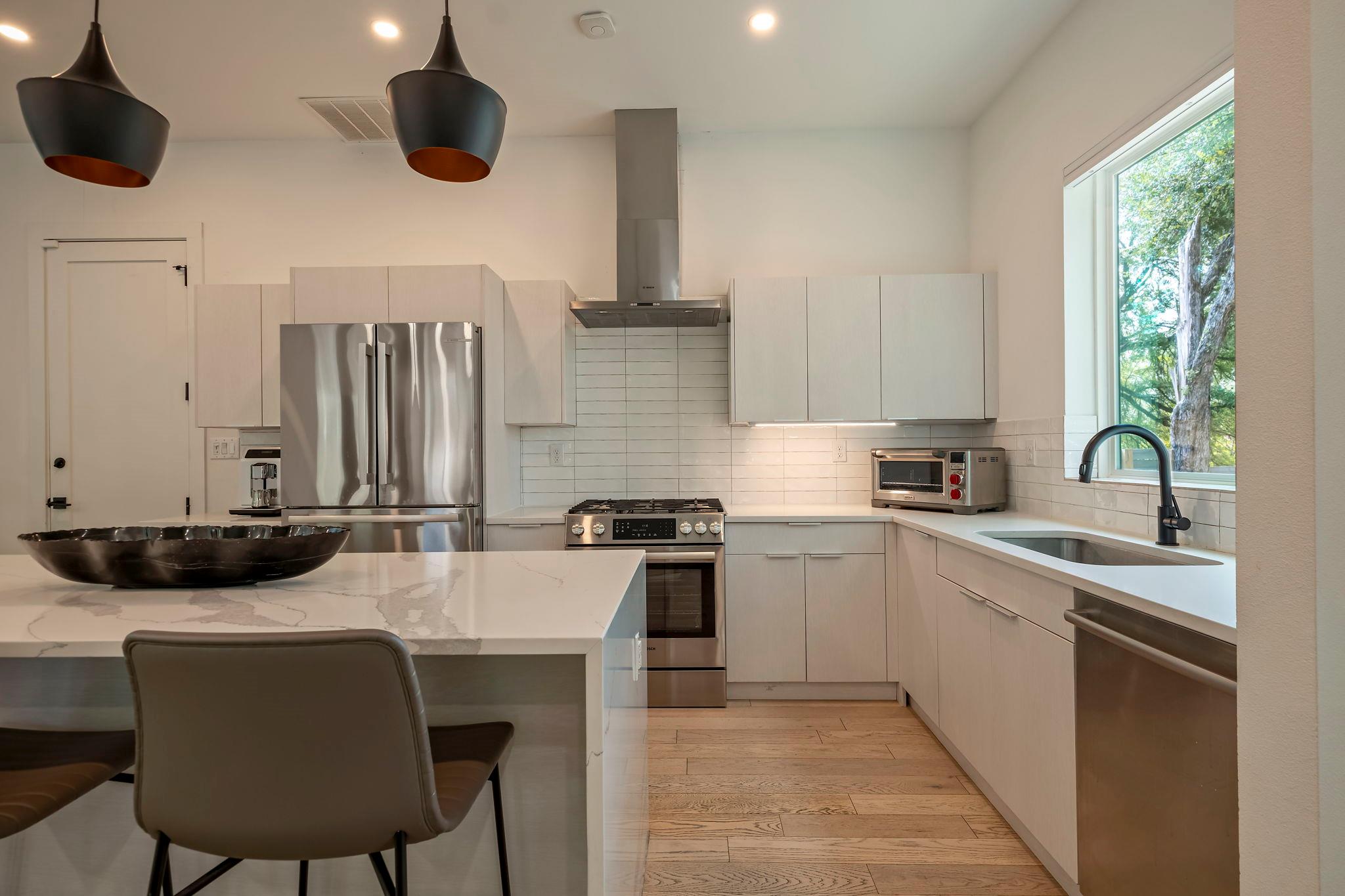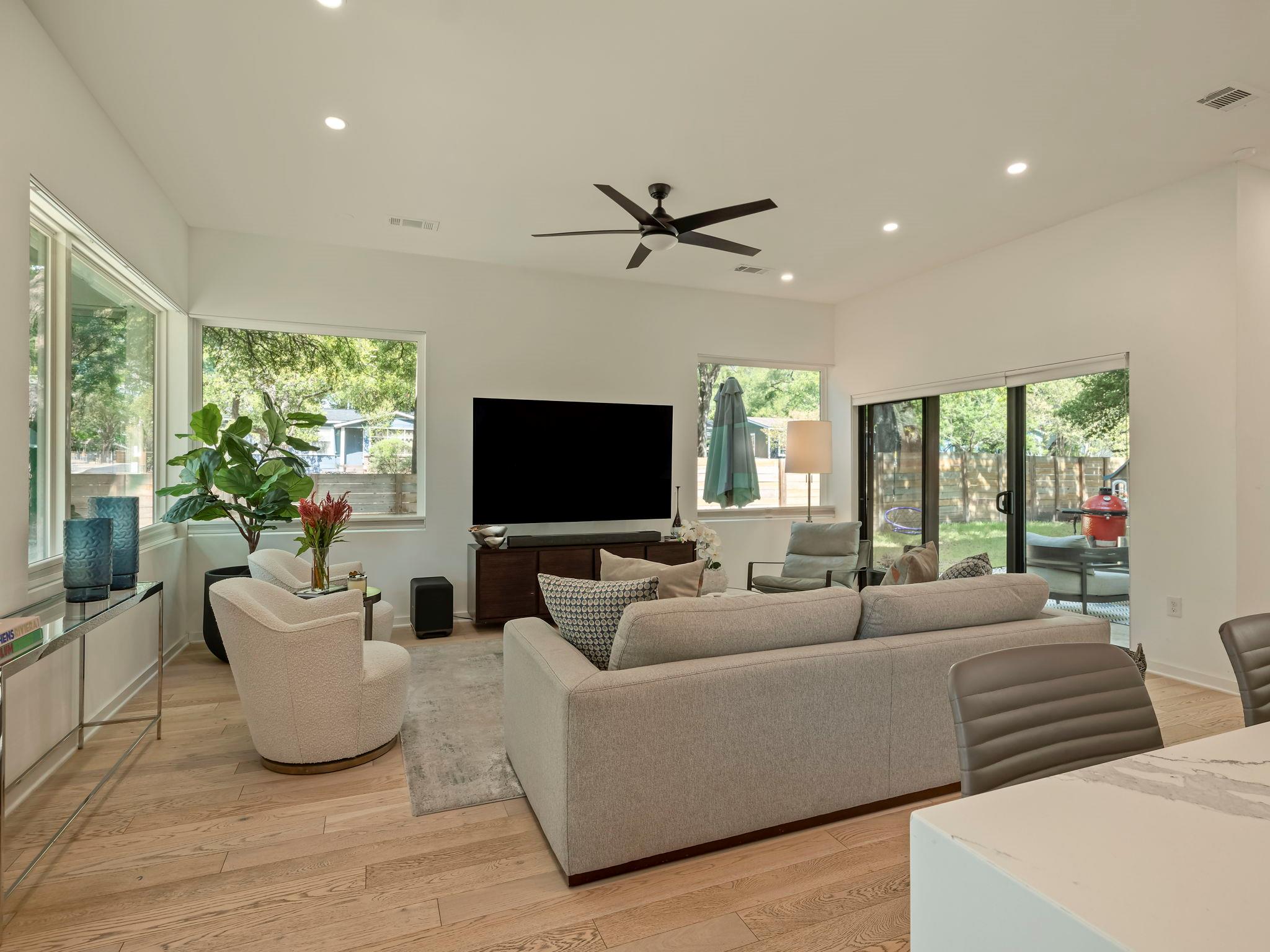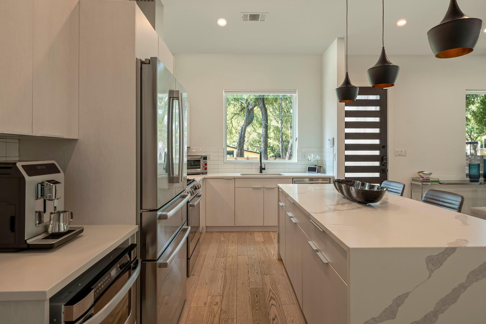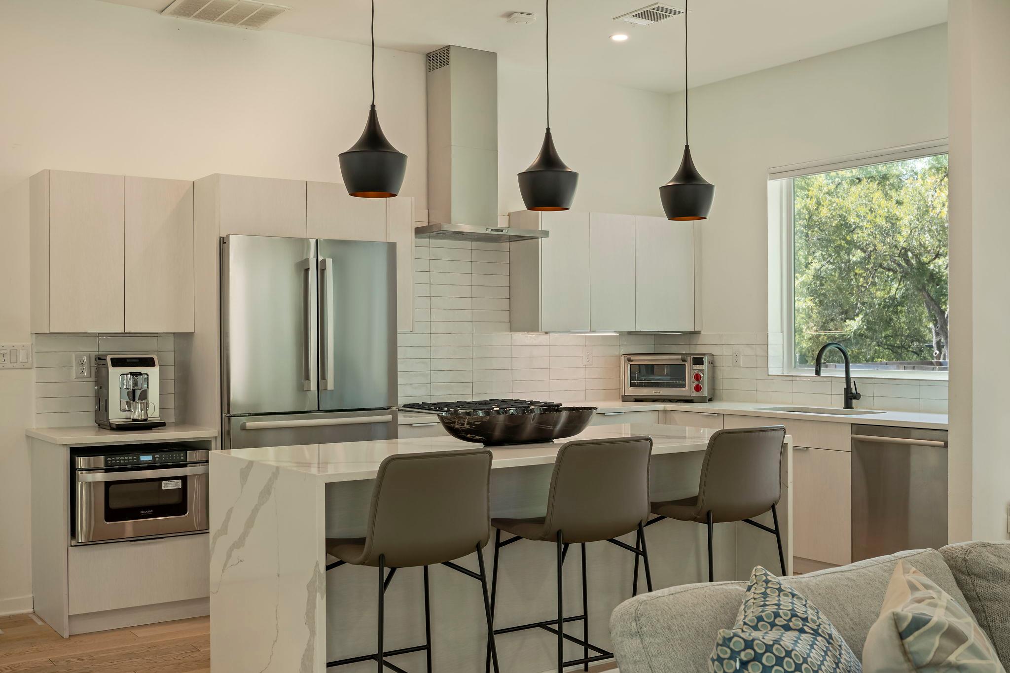 Located in the St. Elmo District / South Manchaca neighborhood along a quiet tree-lined street, this corner property lives like a single-family home. Completely fenced and gated, it offers privacy with both a front yard and a backyard shaded by mature Live Oak and Elm trees. This thoughtfully designed 3-bedroom, 3-bathroom home also includes a detached bonus studio for use as an additional room, gym, office, or creative space....