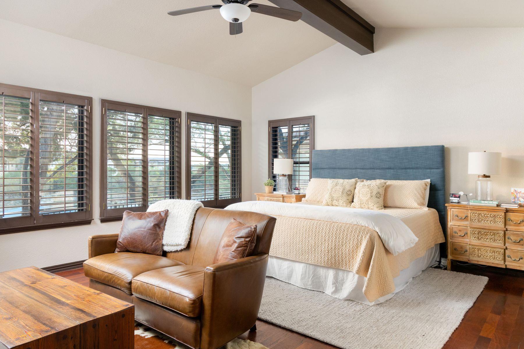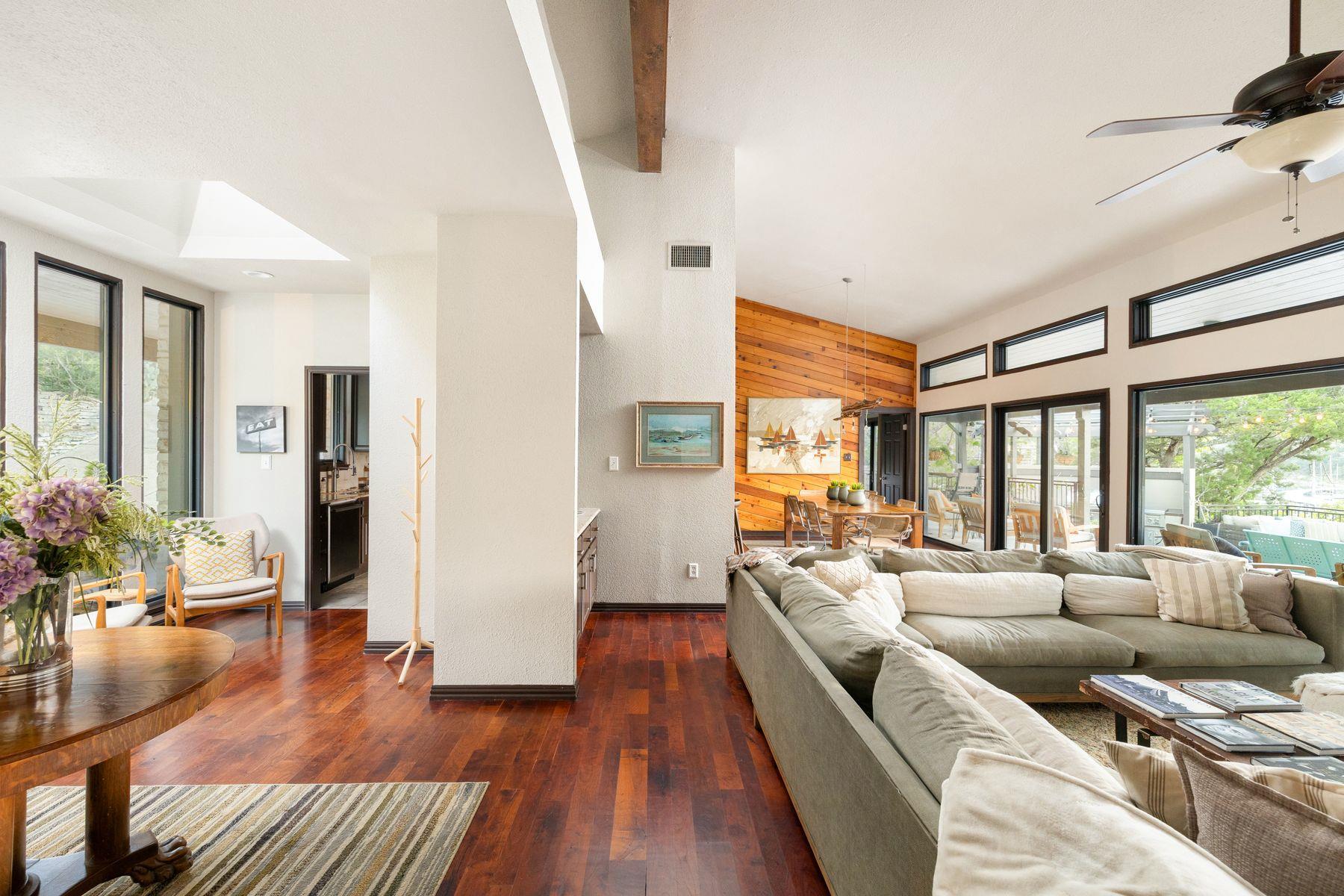Experience lakefront living at its finest in this beautifully updated Lakeway home, situated on nearly an acre with a private boat dock. This east-facing residence is filled with natural light, enhanced by expansive windows and skylights throughout. Thoughtfully upgraded and impeccably maintained, the home offers a true vacation-style retreat. Multiple west-facing patios provide breathtaking sunset views over the lake, creati...