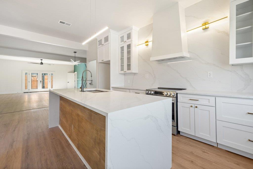 Exceptional single story residence in Forest North Estates offering refined luxury and thoughtful design throughout. This stunning four bedroom two bath home spans 2,503 square feet with a seamless open and light filled layout, all bedrooms on the main level, and no carpet throughout for a sleek modern aesthetic. The extensive remodel showcases upscale finishes and custom details, including a private electric gate, discreet tr...