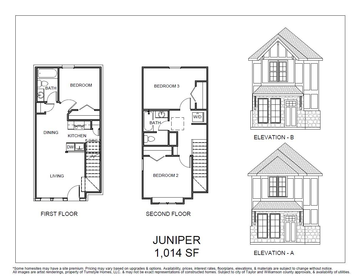 22 homes available from $229,900 to $279,900! The Juniper is a modern 3 bed, 2 bath stand-alone condo in The Villas at Cottonwood Trail—a boutique 22-home community in Hutto, TX. Priced from $249,900, this thoughtfully designed floor plan features a bright, open living, kitchen, and dining area with large windows that bring in abundant natural light. A main-floor bedroom with ensuite bath is privately located near the downstai...