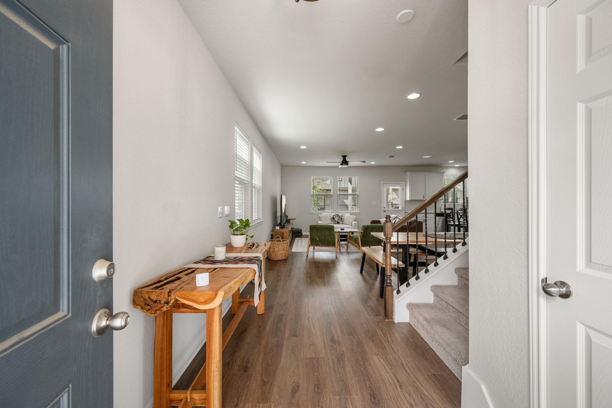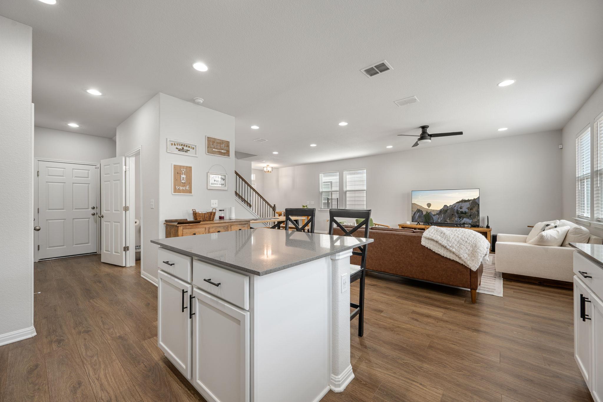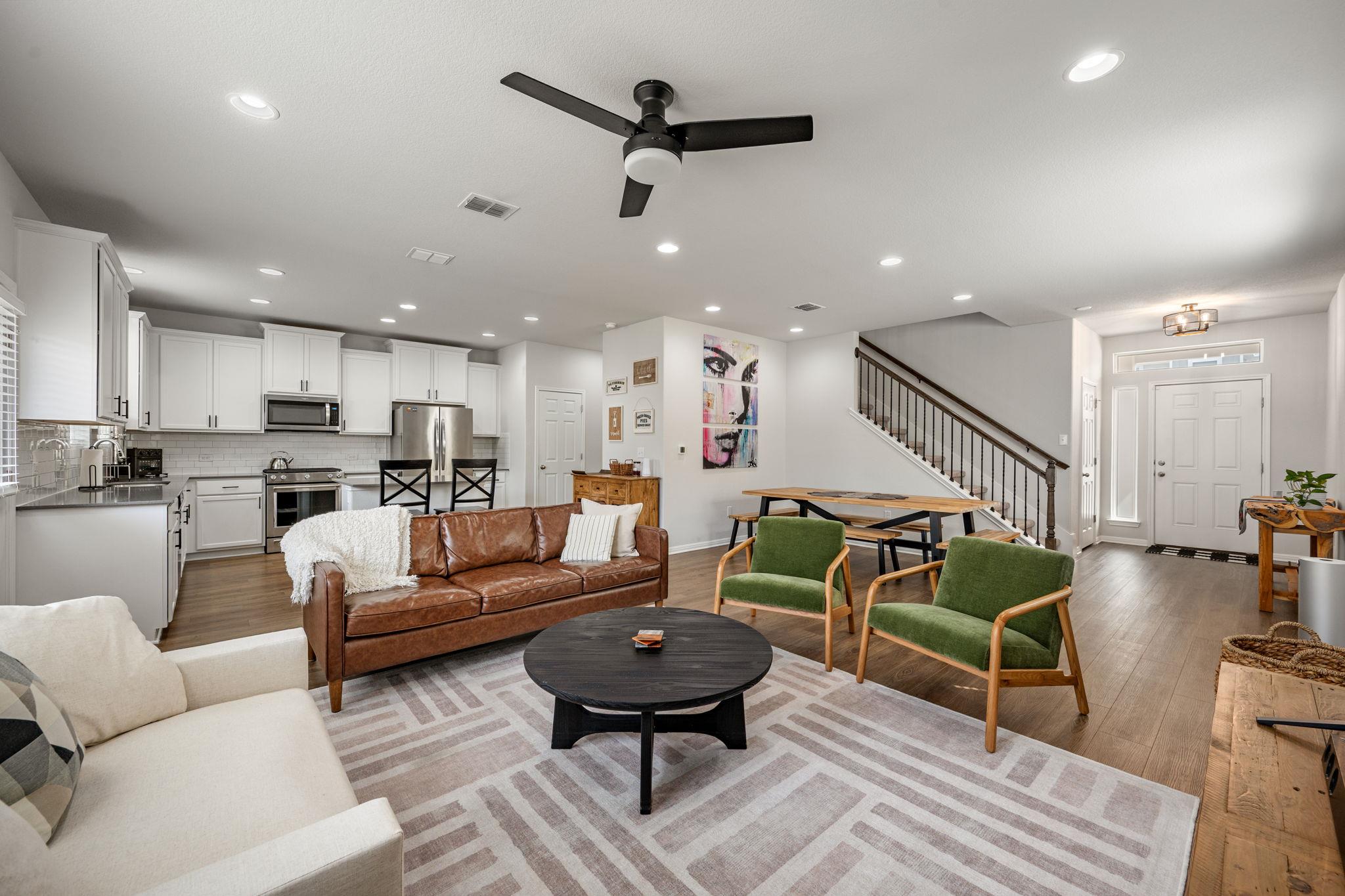 Welcome to easy living in the Messinger community, a detached condo neighborhood in the heart of vibrant South Austin. This 3-bedroom, 2.5-bathroom home features an open-concept design that seamlessly connects the living, kitchen, and dining areas—ideal for both everyday comfort and entertaining. Durable wood-look vinyl flooring runs throughout the main level, offering both style and easy maintenance. Upstairs, all bedrooms p...